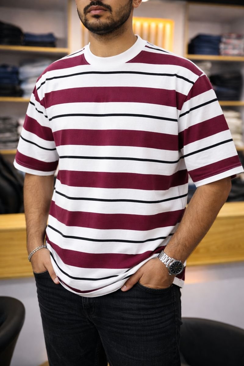 Elevate your casual game with the Manmode Loose Fit Striped Drop Shoulder Tee โ€” where effortless ease meets a playful edge. Crafted from soft, breathable cotton, this tee gives you that โ€œwoke up looking goodโ€ energy without even trying.